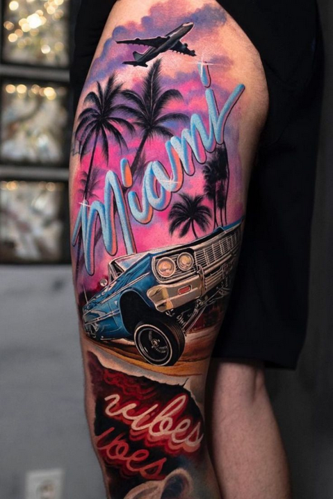 Discover tattoos that capture the essence of Miami's beaches, beauty, and unforgettable experiences.